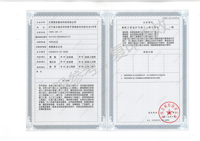 中國展覽協(xié)會展覽陳列工程設(shè)計與施工一體化資質(zhì)等級證書