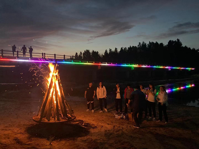 夕陽西下,迎來了我們的篝火晚會,在美麗的煙花下我們許下了我們的心愿